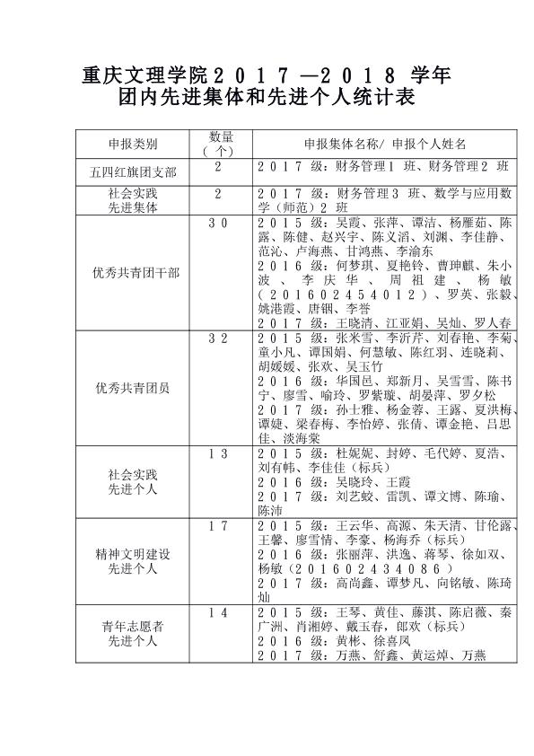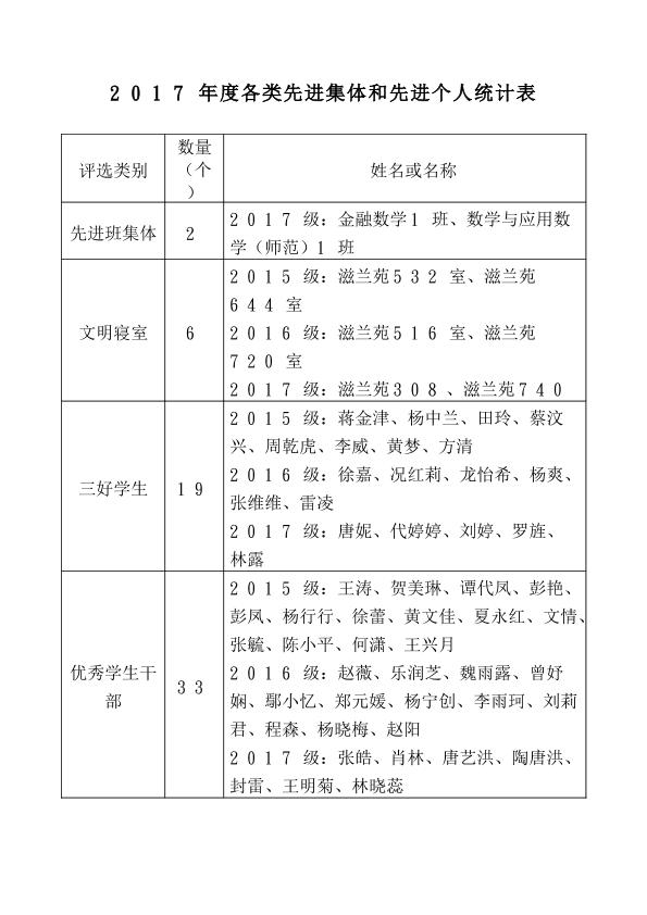 2017年度各类先进集体和先进个人统计表