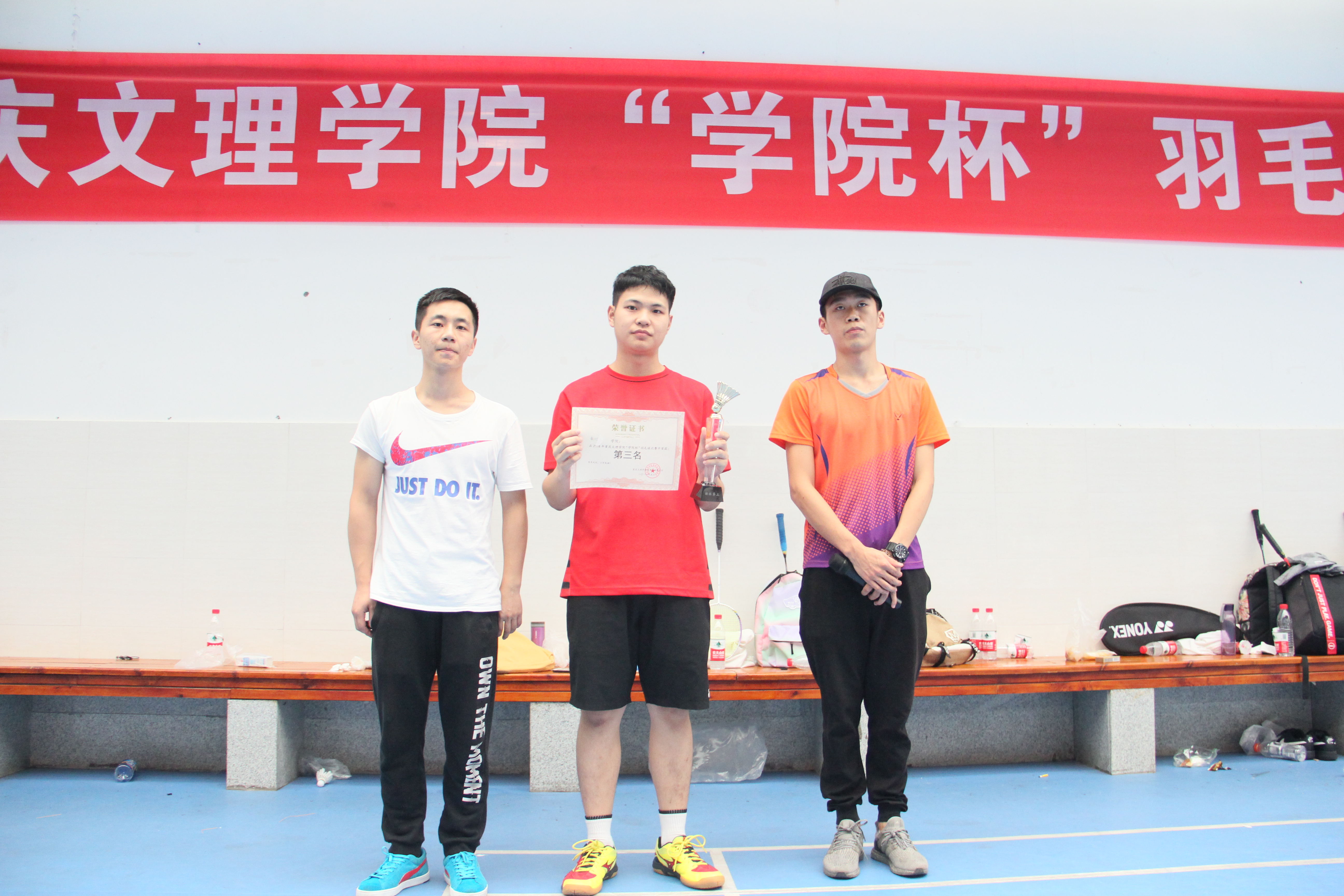 2018年5月26日上午8:30,由我校体育运动委员会主办、体育学院承办的“学院杯”羽毛球比赛在红河B区室内羽毛球场如期举行。经过两天的激烈角逐,M88羽毛球代表队取得团体第三名的好成绩。