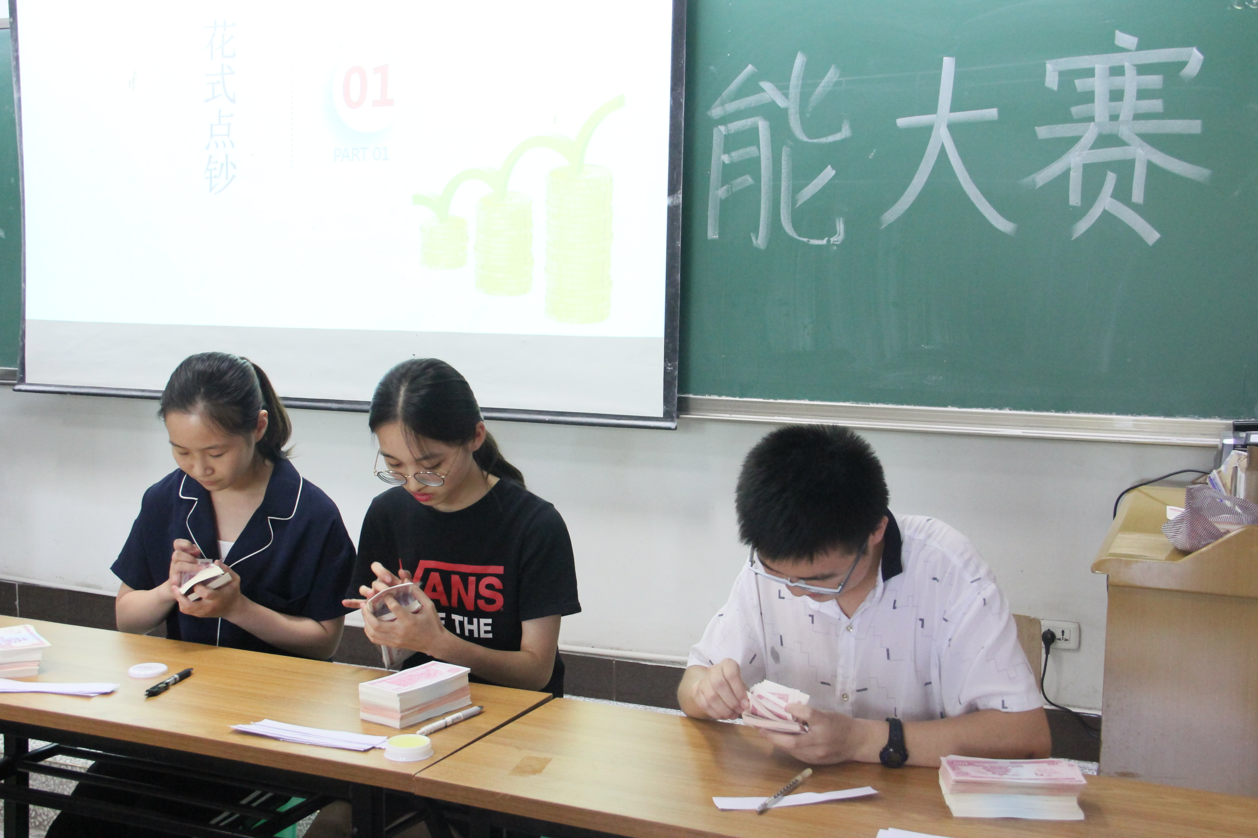 此次大赛分为初赛和决赛两个阶段。初赛以答卷的形式考查国际钞票知识,经过一小时的奋笔疾书,最终共有18名选手脱颖而出,进入决赛。决赛分为花式点钞和识别钞票两个环节,18名选手被分为6组,每组3人,以组为单位进行对决。在花式点钞环节,选手们的指法各不相同,单指单张法、单指多张法、多指多张法、扇面法,点钞速度令人目不暇接。在识别钞票环节,每组派一名代表在50张国际钞票中选择并识别出5张,选手们过硬的钞票识别能力令在场的同学们赞叹不已。最后,邓晓燕和杨树成分别对本次大赛进行点评,邓晓燕向同学们分享了以前见过的一场财务专业技能大赛,并建议:让财务专业人才制定更加规范的比赛规则,设定挑战赛,增强比赛的趣味性,从而发现更多业余人才。杨树成则对社团建设提出了三个建议:一、多开展能展现社团风采的活动;二、开展活动最好在上半学期,利用更多的时间用来构思筹划下学年的活动内容;三、多多创新,顺应时代发展潮流,推出适时的新活动。