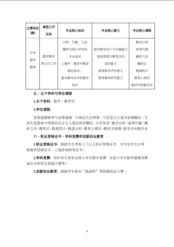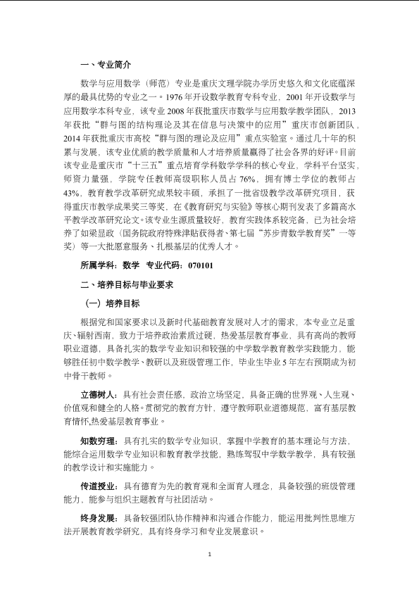 数学与应用数学(师范)专业人才培养方案