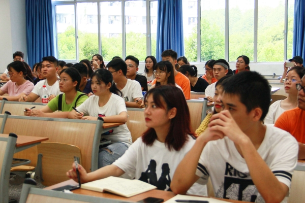 为确保M88迎新工作的顺利展开,2019年9月6日下午6:00,M88在知津楼D301成功召开了2019级新生迎新志愿者培训会。学院党政办公室主任黄华,团学工作负责人邹佳桃,院学生两委会成员以及2017级和2018级迎新志愿者等70余人参与了本次会议。