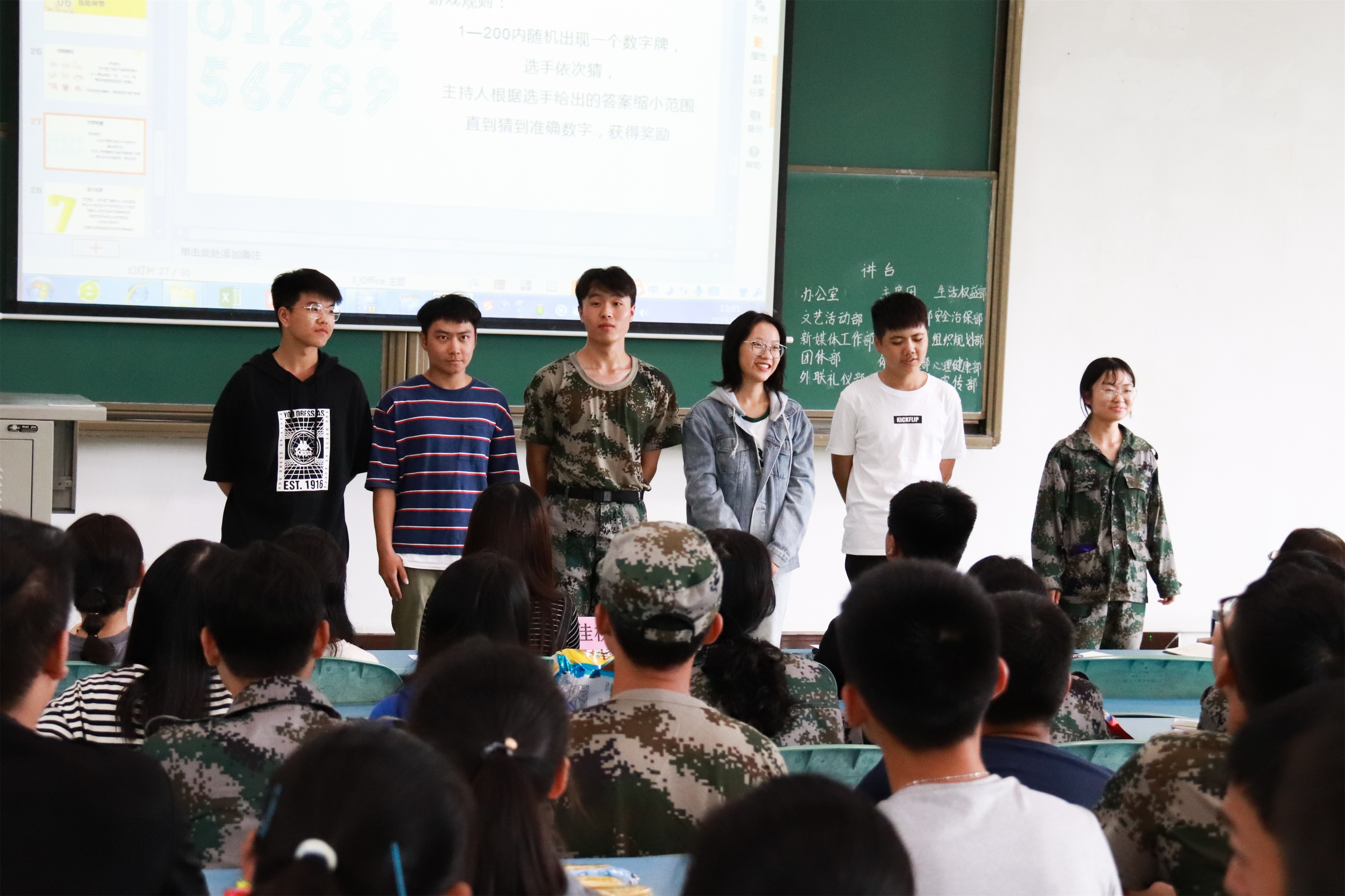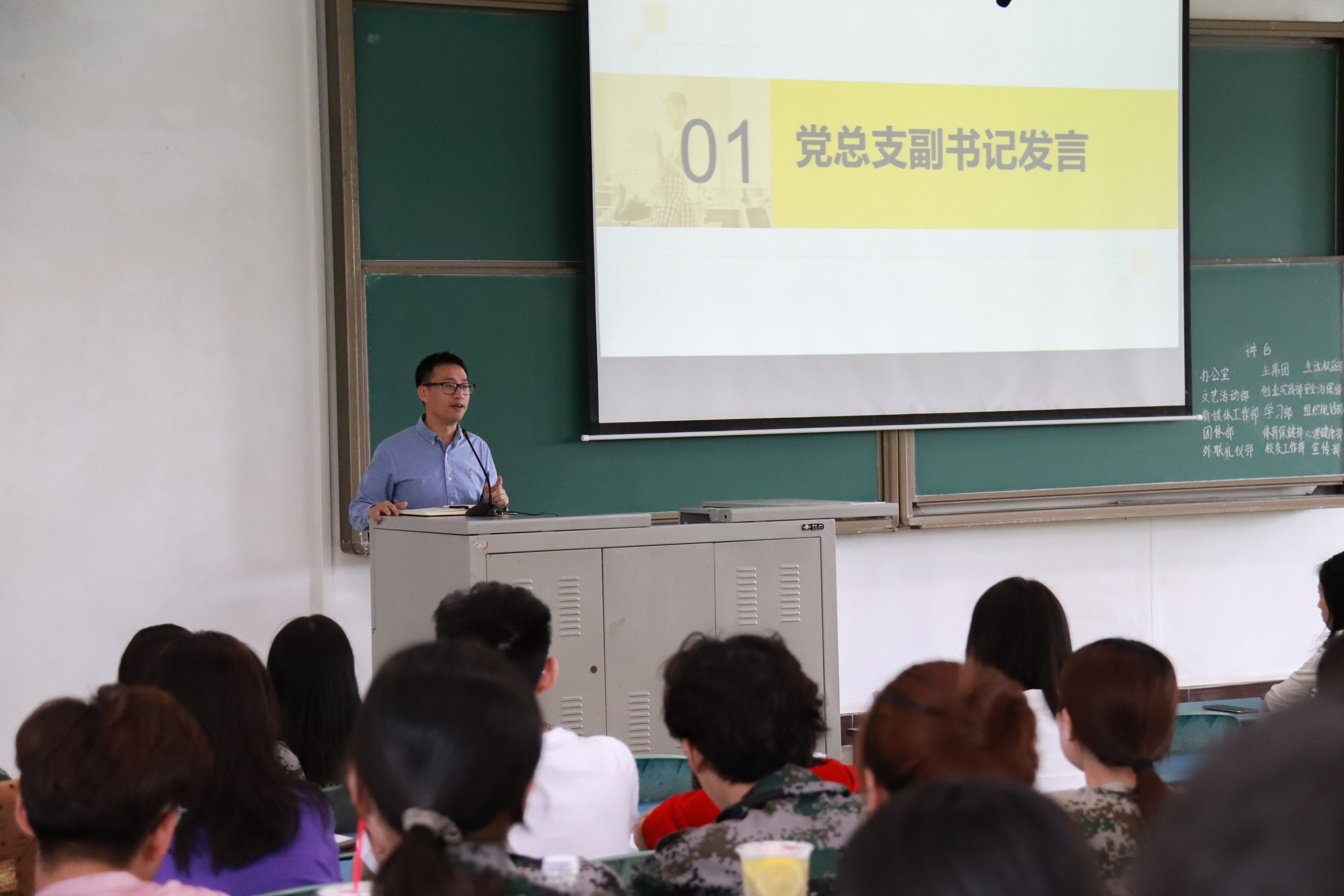 副书记黄华首先对新成员的加入表示热烈的欢迎,他要求在座的全体学生干部,在做表率的时候要牢记自己是学生干部,做好带头作用;在做事的时候不要把自己当作干部,而是要踏踏实实地做“干事”,做到言必行,行必果。并激励同学们要在抓住机会好好锻炼自己,提高自己的办事能力、组织协调能力。随后邹佳桃老师鼓励我们要进步、要努力前进,在院级团学组织展示最好的自己。紧接着通过PPT和视频向新干事们介绍了全体学生干部以及M88的特色活动和相关工作。