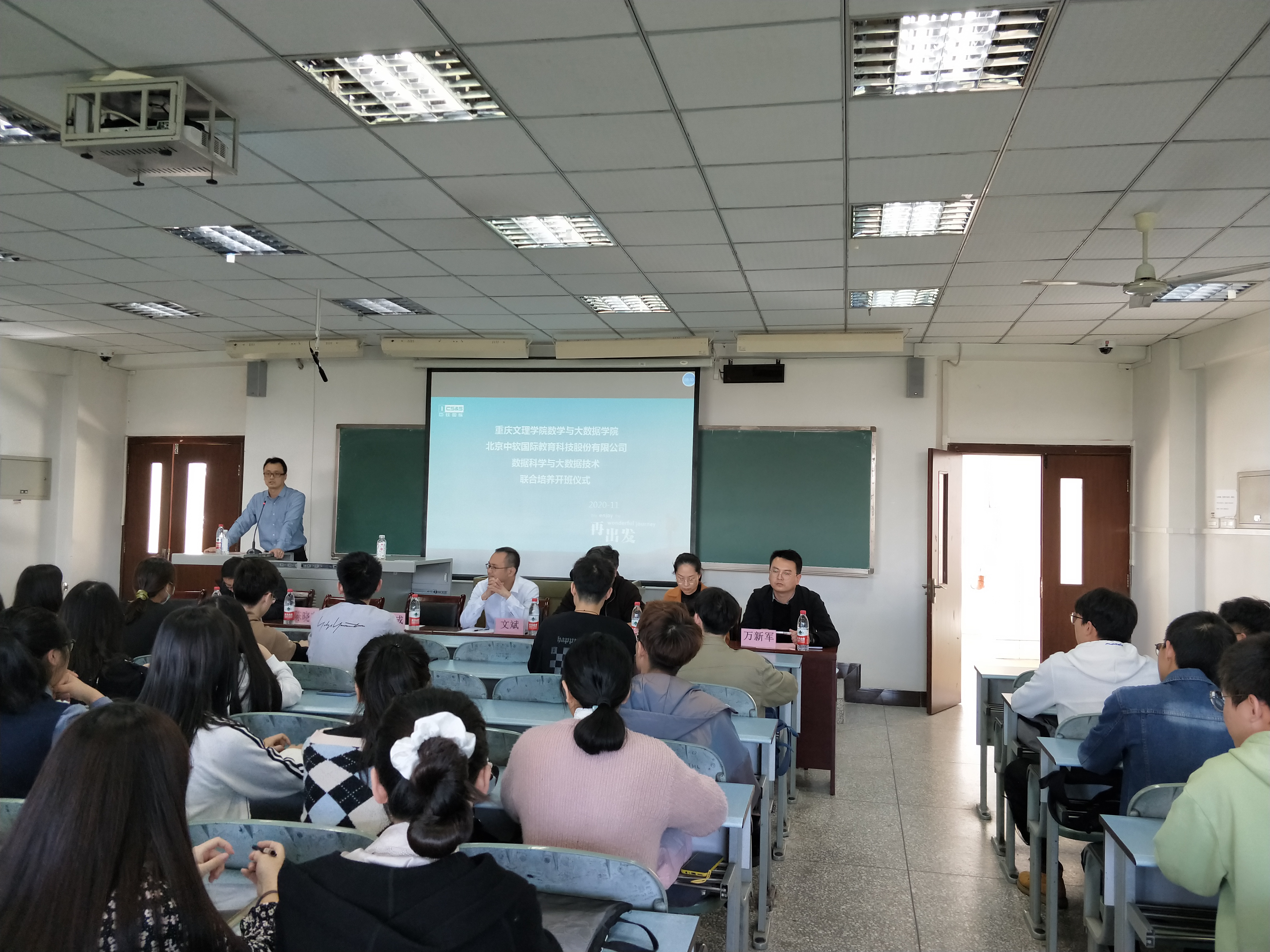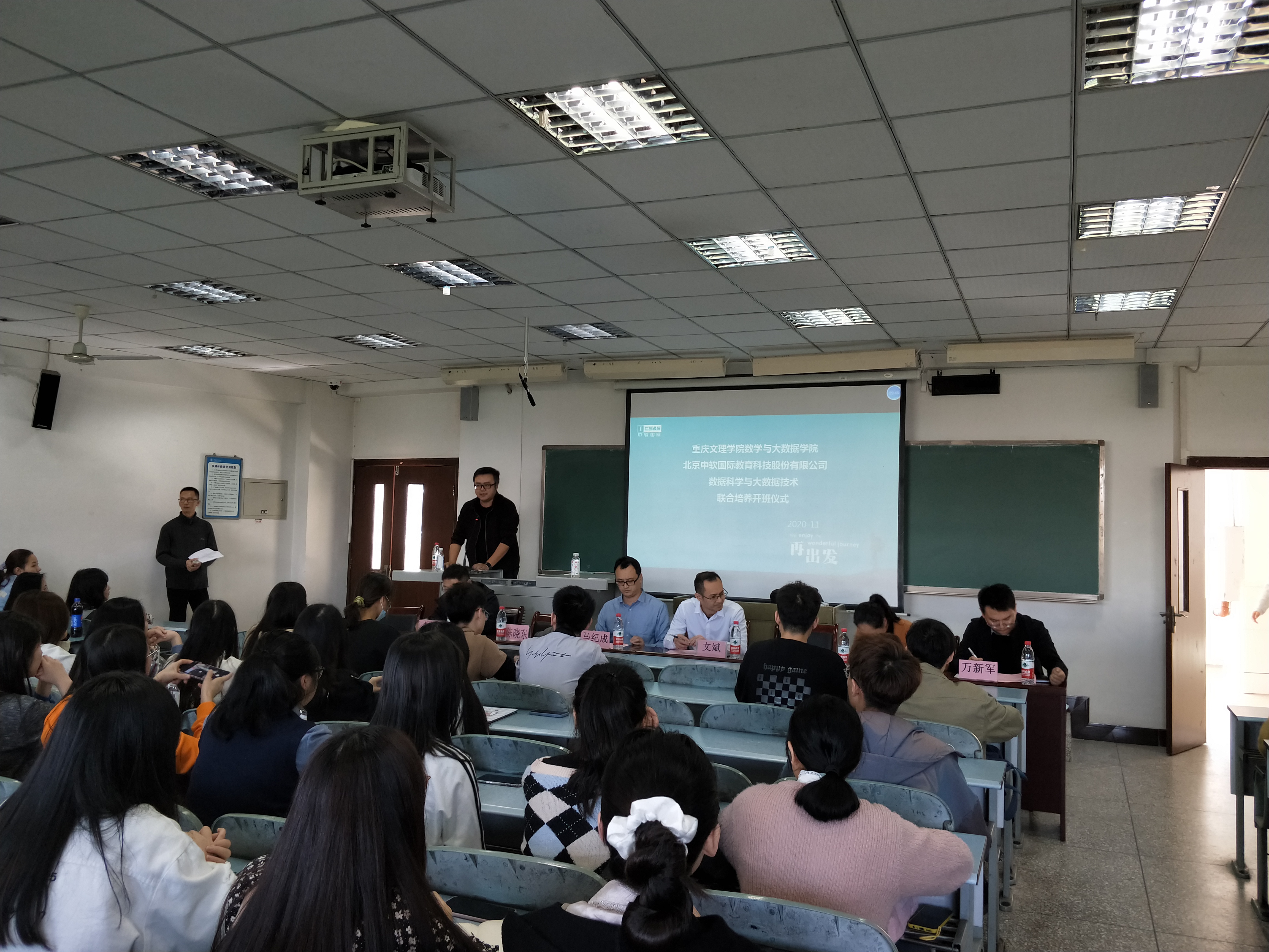2020年11月11日下午14:00,在M88红河A区知津-D404,开展M88中软国际数据科学与大数据技术专业联合培养开班仪式。出席开班仪式的有数学与大数据学院执行院长马纪成、中软国际教育科技股份有限公司西南片区总经理文斌、技术总监朱映、院校总监万新军、高级工程师赵雷、职业发展总监蔡珍珍,开班仪式由数学与大数据学院副院长陈晓东主持。