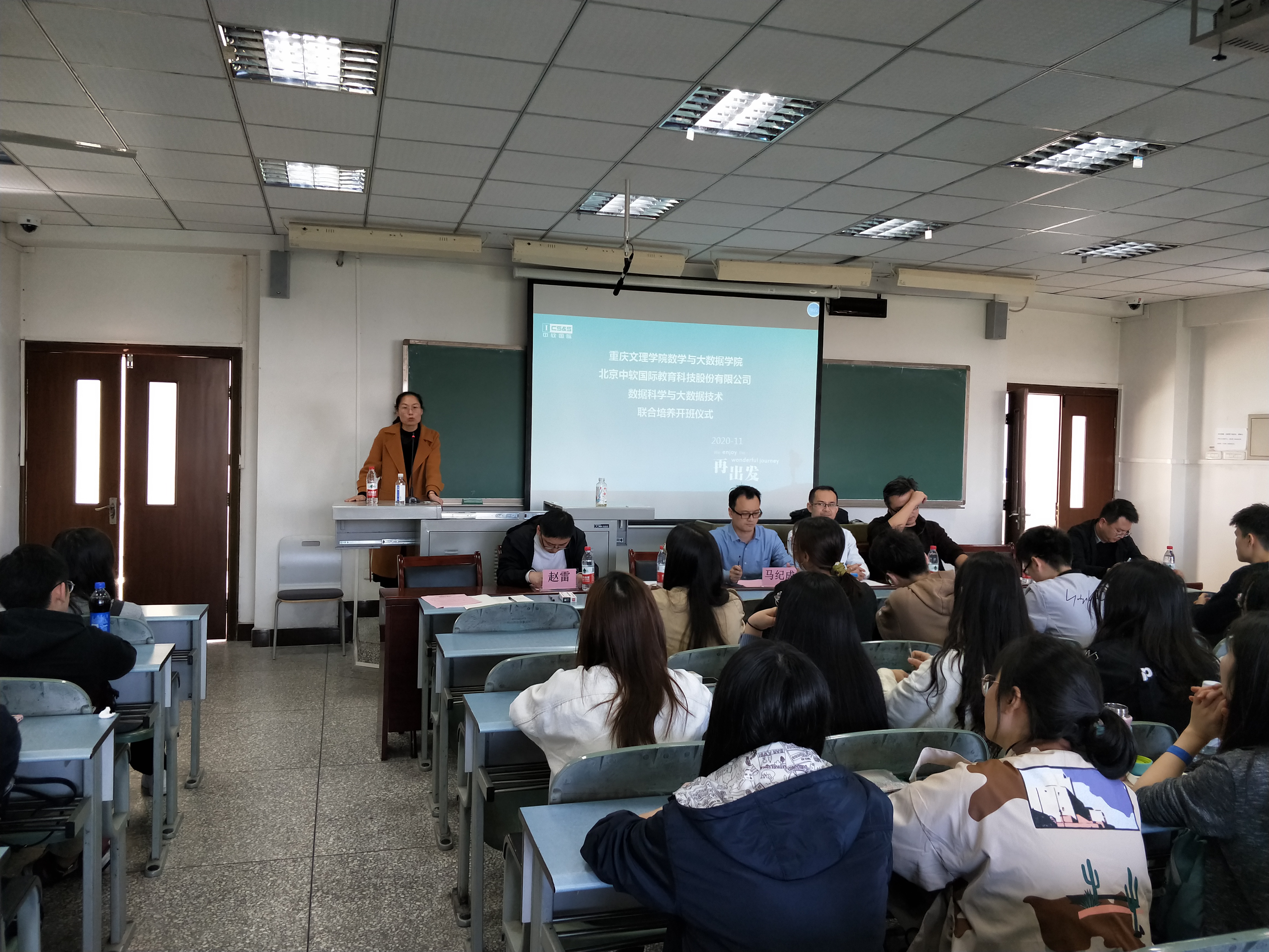 首先,马院长致词,为将最新行业标准和前沿技术融入专业教学和工程实践,培养学生独立自主学习能力、动手能力和创新意识,双方于18年开始沟通交流,逐步达成了数据科学与大数据技术专业学生开展联合培养平台。希望同学们学到过硬的本领。然后,技术总监朱映致词,他强调数据分析、数据处理要深厚的数学知识,有执实的理论基础、有熟练的操作技能是复合型人才建设的需要。希望各位同学学有所成。开班仪式后,就进入了上课环节。本次授课的课程是《数据仓库技术》,由高级工程师赵雷存担教学任务,教学工作直到17周结束。