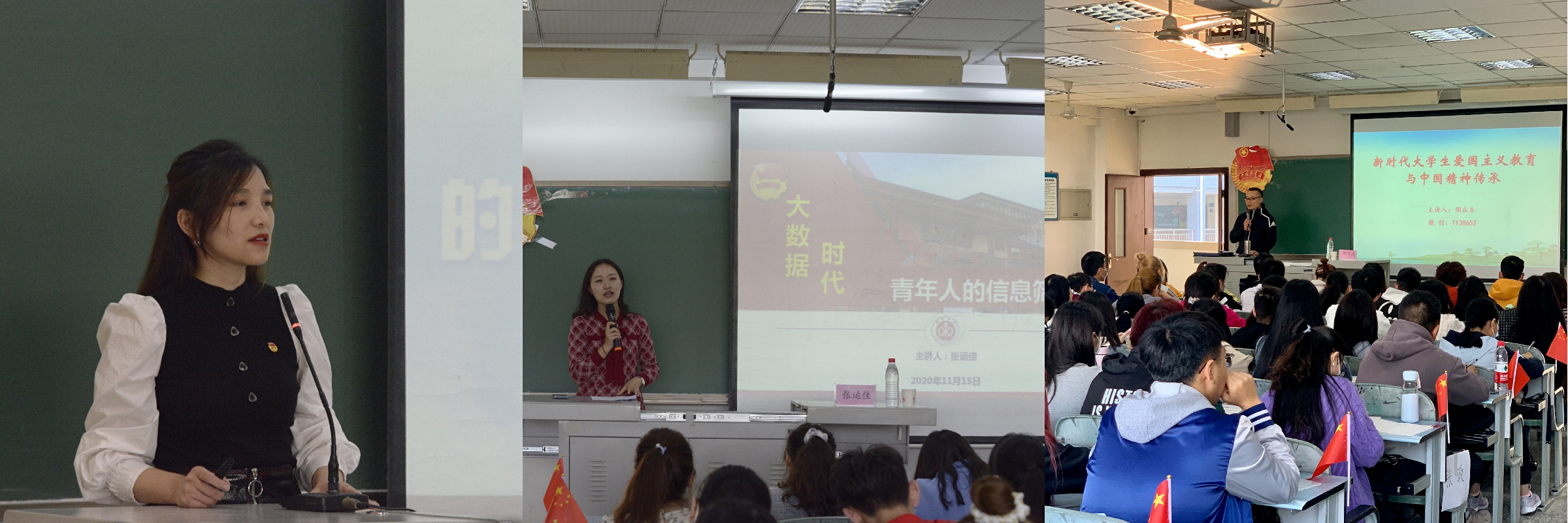 几位老师分别以《新时代大学生的爱国主义与中国精神》、《乘风破浪,奋斗青春》、《大叔据时代,青年人的信息筛选》和《校园新闻宣传》为题为同学们讲解了新时代大学生如何做一个忠诚的爱国者,培养同学们的爱国主义情怀,详细的讲解中国精神的具体体现和大学生应有的担当与作;冉赟老师给同学们分享了多彩的大学生活,从树立目标找自行,多学本领讲方法,要有规划有实践和新时代大学生的五个特征,明确指出奋斗的青春最美丽;张运佳老师结合信息时代、大数据时代,智媒体、融媒体、公众号、小视频中海量信息,大学生应如何应对与选择;向明副书记以校园新闻宣传为切口,给同学们详细讲解了校园新闻的捕捉,校园新闻稿的要素,校园新闻稿的构成以及校园新闻稿的具体写作方法等,大大提升了本期团校学员的新闻写作技能,为广大学员,特别是学生干部更好的开展宣传工作打下坚实基础。