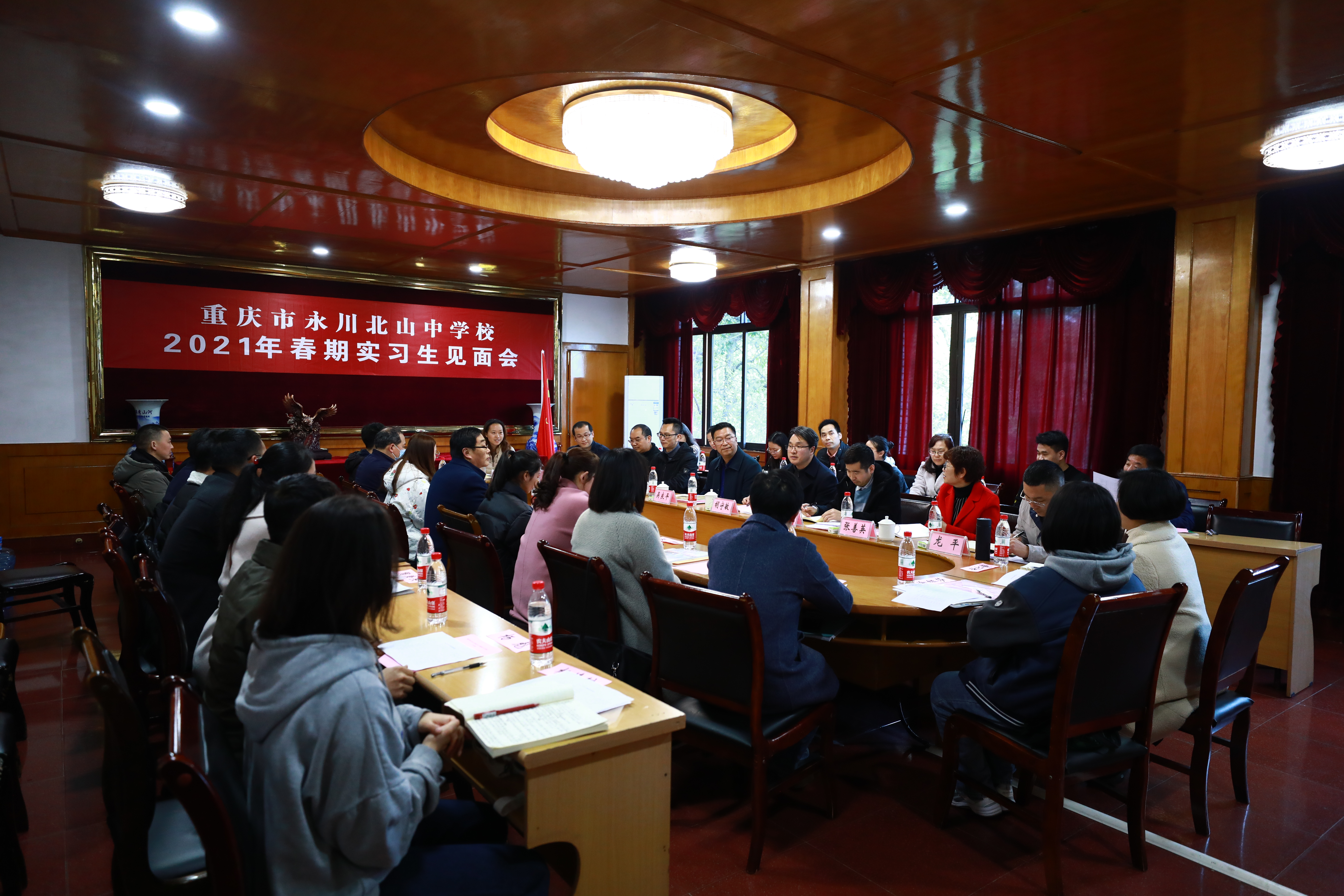 2021年 3月8日至9日,M882017级数学与应用数学(师范)专业考研后教育实习师生见面会分别在永川区汇龙小学、M88附属中学、兴龙湖中学、永川北山中学进行,参与师生见面会的有永川区中小学实习学校的领导、M88副院长陈晓东、教学办主任罗章涛、实习指导教师付天贵及2017级数学与应用数学(师范)专业40名实习学生。