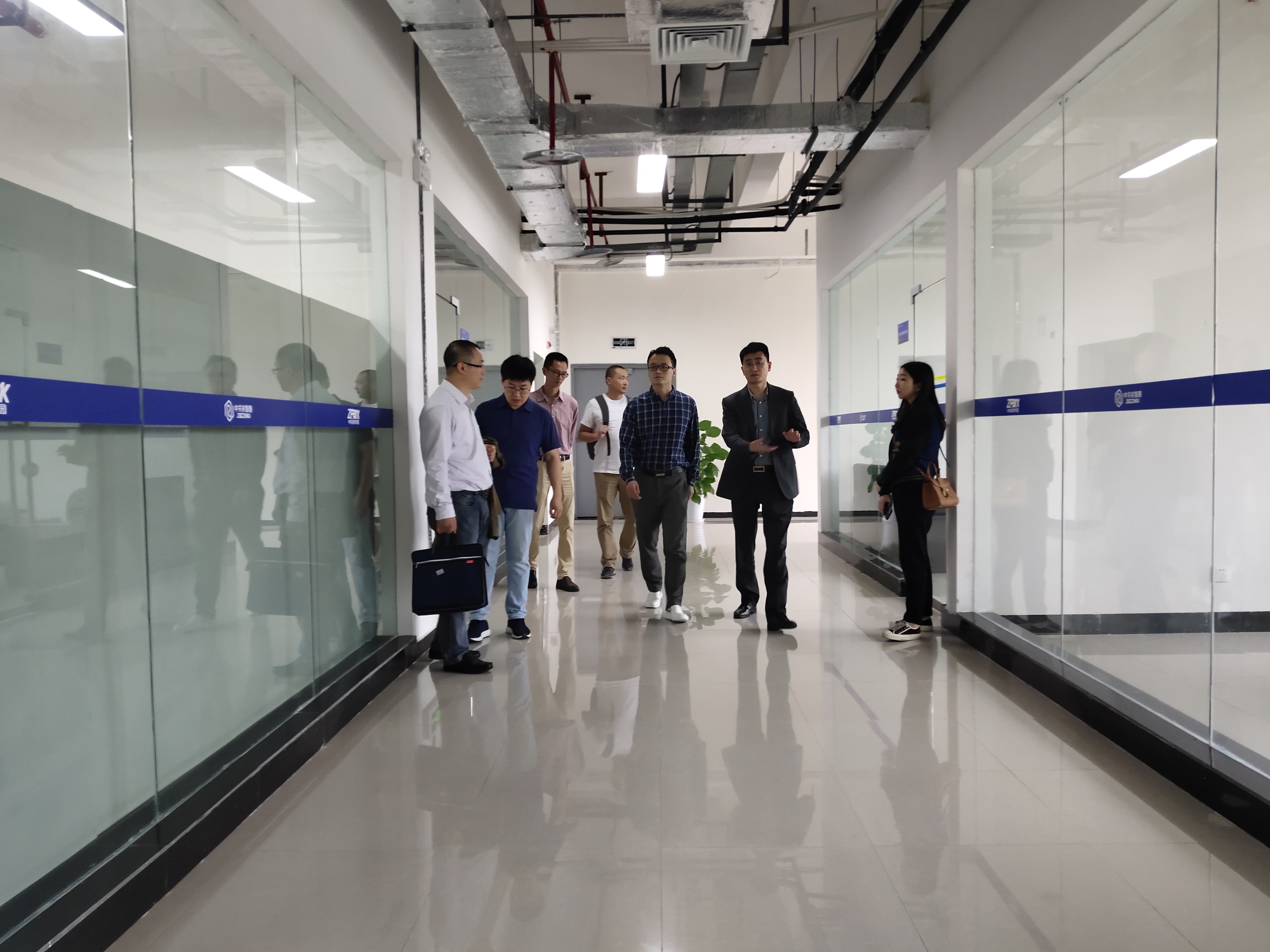 为推动校企合作,促进专业建设,进一步推动专业发展同行业接轨,2021年5月27日下午2:30,M88执行院长马纪成,副院长陈晓东带队到中关村智酷参观调研,陪同调研的还有复杂数据分析与人工智能重庆市重点实验室副主任赵恒军博士,教学办主任罗章涛等。调研组一行受到了冯录总经理的热情接待,在冯总经理及行业专家的陪同下,参观了中关村智酷公司在重庆云谷永川大数据产业园的智酷人才创新实践中心、企业实训基地等。