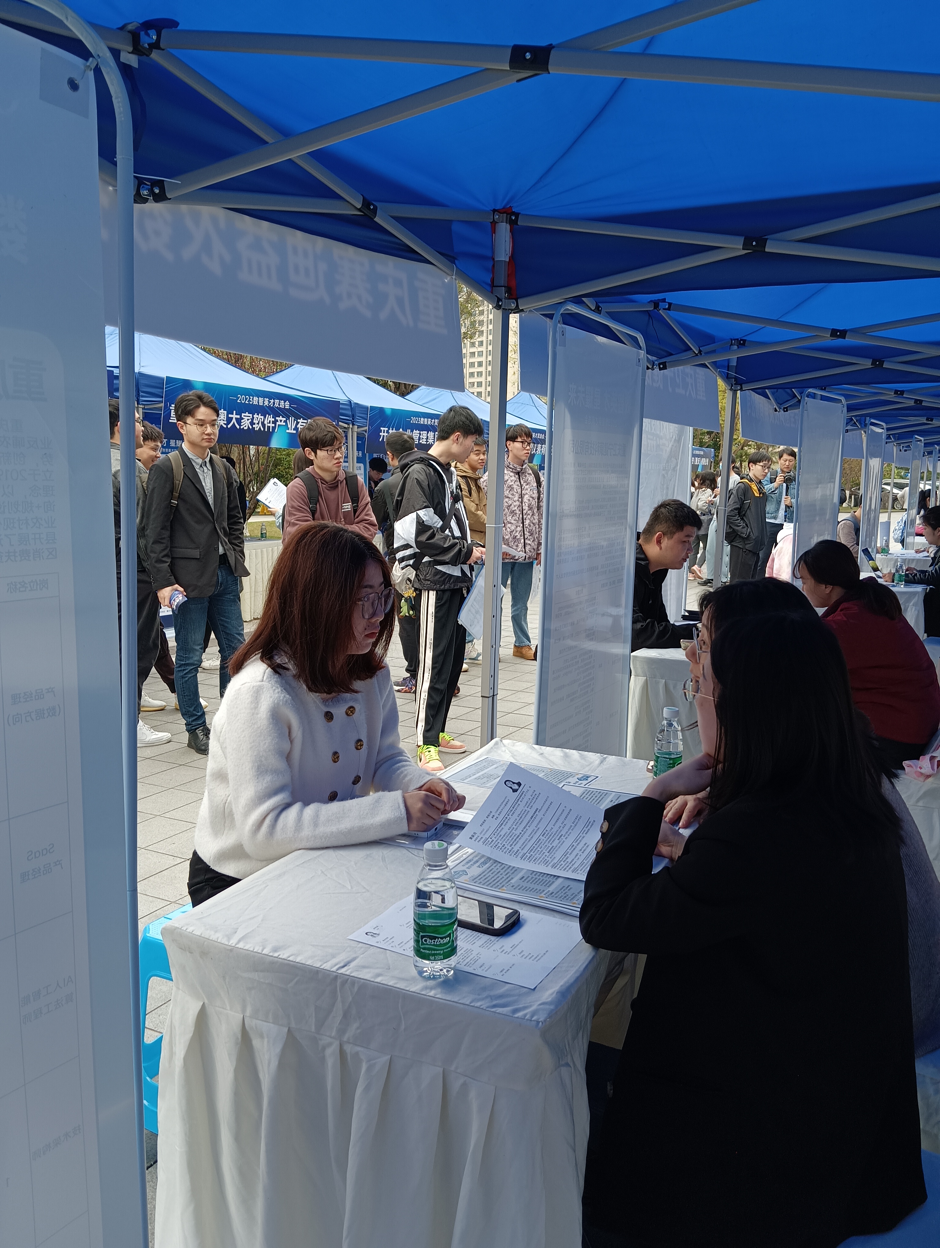双方围绕人才培养、就业创业开展了深入交流。学院2023届毕业生参加了在互联网学院举行的由两江产业集团、市软件行业协会与中软国际教育联合主办的“数智英才 星耀未来”2023数智英才双选会。该双选会有63家用人单位参加,提供了1200余个岗位。毕业生们在招聘会积极投递简历,和用人单位咨询交流,学院也对部分企业发出了来校招聘的邀请。