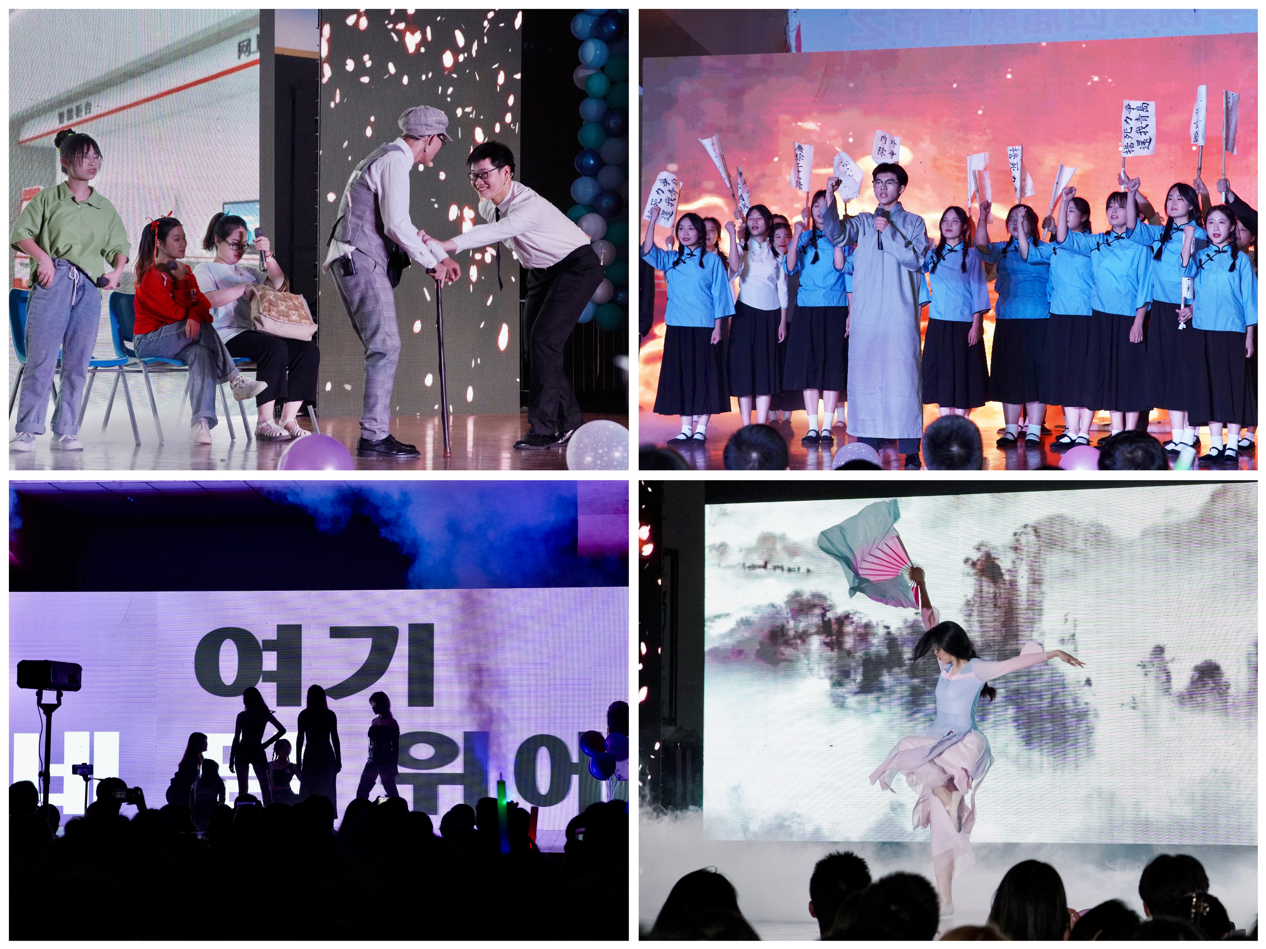 活动以乐队热情激昂的旋律拉开序幕,出席嘉宾为学院2023届毕业生联络员颁发聘书点燃了全场的热情。本次活动演出内容丰富、形式多样,舞蹈、相声、器乐、朗诵、小品等节目轮番上阵,精彩绝伦。小品节目《反诈银行》生动演绎了受害人被诈骗的经过,呼吁师生提高防范电信诈骗的意识。朗诵节目《觉醒年代》让我们觉醒青春,担青年人该有之责任担当。最后,学弟学妹用歌曲串烧《重温岁月,不负相遇》表达了对2023届学长学姐们的真挚祝福。