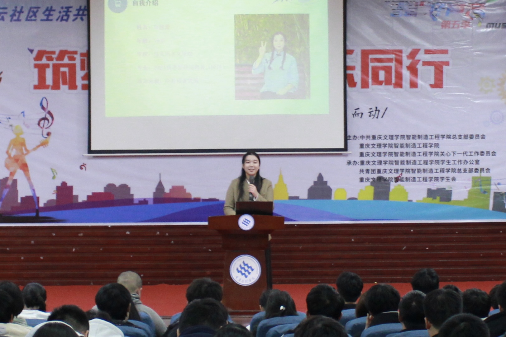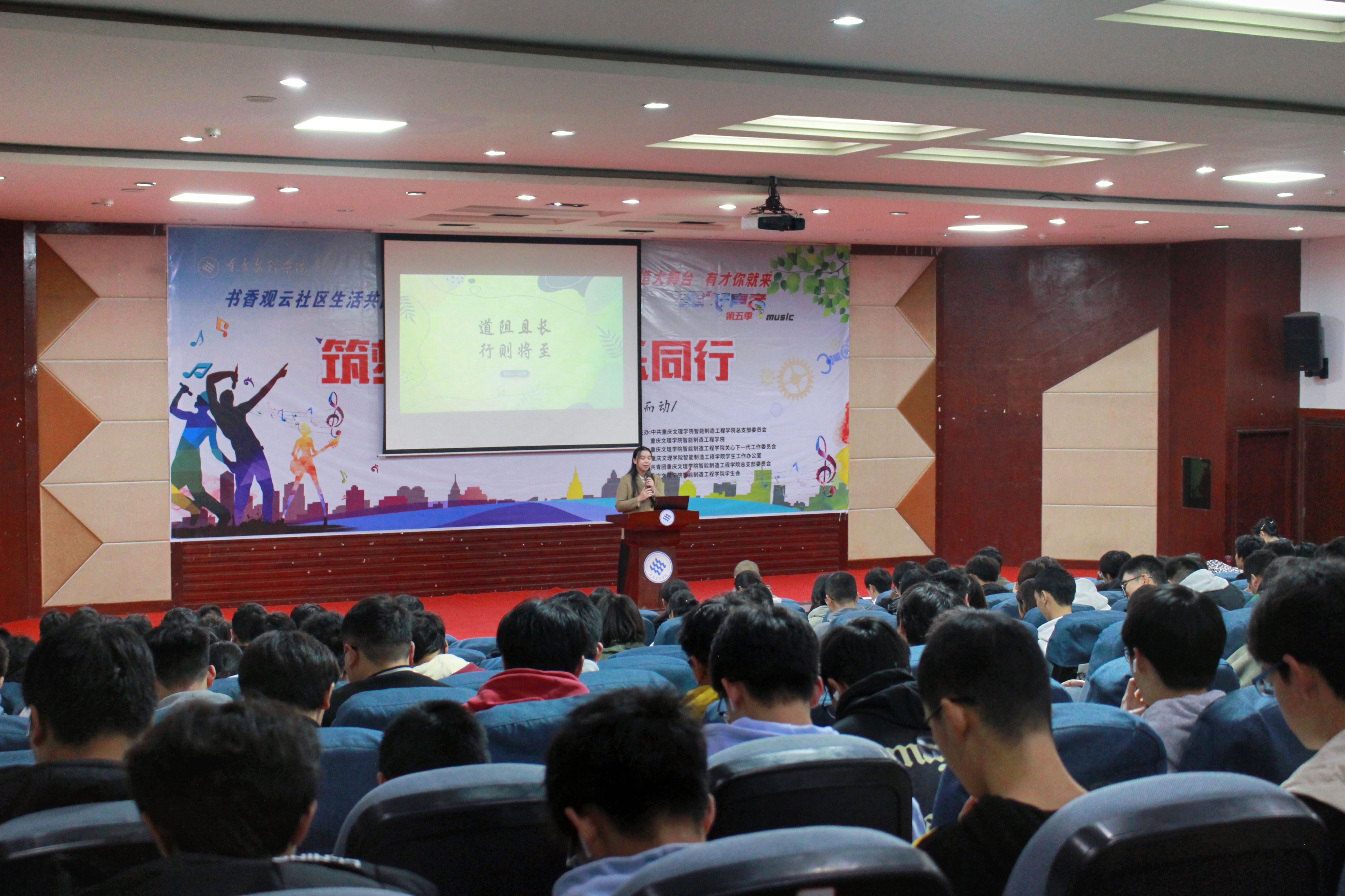 “道阻且长,行则将至”马茜蕾同学结合自身成长成长经历从“破茧”、“努力尝试”、“成碟”几个方面向同学们讲述了自己从“普通”走向“奇葩”的经历。宣讲过程中,马茜蕾同学还向同学们分享了自己获得各种奖项的心路历程以及在实践活动中所总结出来经验。最后,马茜蕾同学向同学们分享了一句话,“花会自然开,老天爱笨小孩”以此来表达她对同学们的祝愿。
