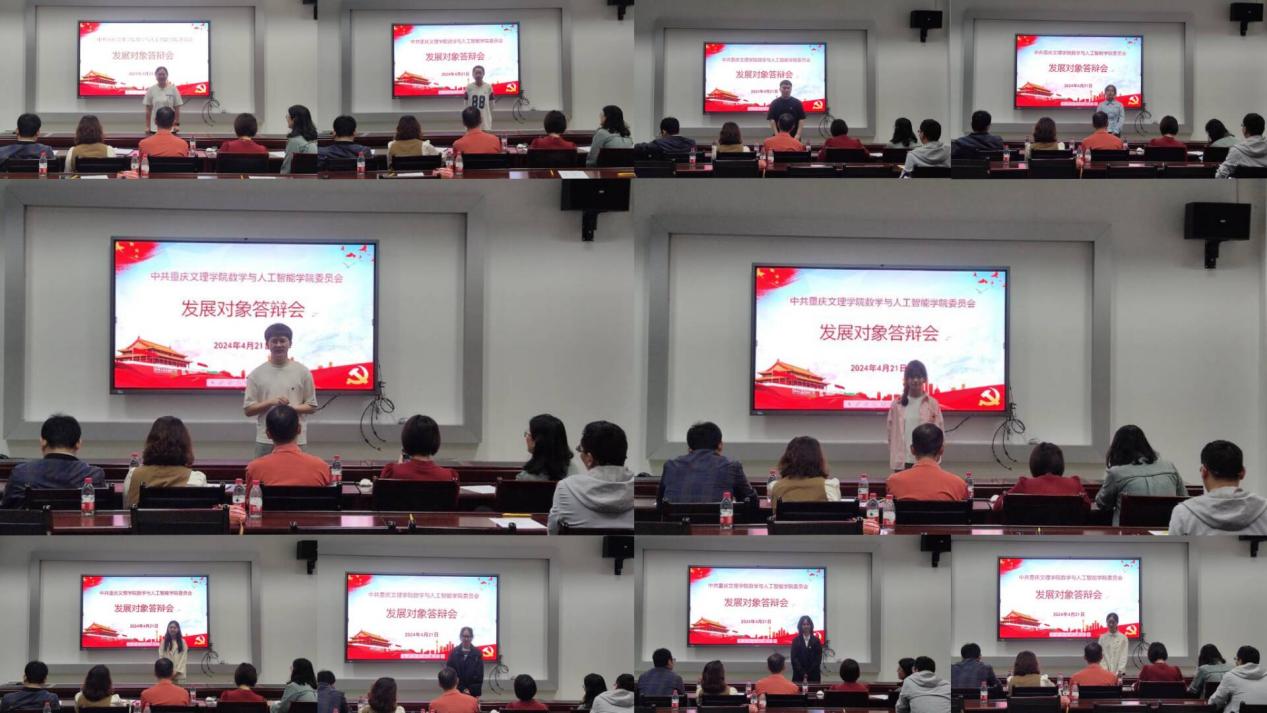 4月21日晚7:00-9:30,M88党委组织学生各支部在知津楼C104会议室开展2023-2024学年第二学期党员发展对象答辩会。学院党委书记杨加强、党委副书记何雯,学生各党支部书记、部分委员及37名本学期即将发展的入党对象参加了此次答辩会。