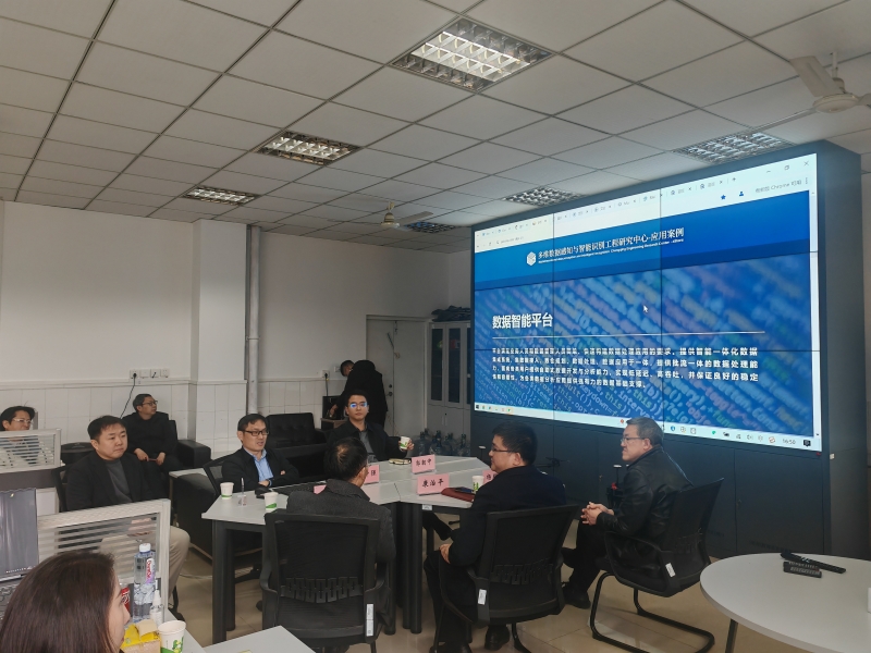 马新强副院长向考察组详细介绍了中心在AI大模型领域的最新研究成果,重点展示了在算法优化、多模态数据处理、智能识别等关键技术上的研究,以及这些技术在智慧城市、工业互联网等领域的应用案例。考察组实地观摩了相关技术演示,并就技术落地、成果转化、大模型本地化算力部署、数据安全合规性等核心问题展开探讨。