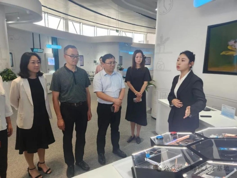 在邓锋总监的解说下,王东强一行首先参观了鲲鹏人才基地展厅,详细了解了基地建设框架、荣誉资质、讯方技术发展历程、工业软件实训平台及院校运营成果等情况。邓锋总监介绍,截止目前,公司已与全国700余所高校共建特色课程,构建了“三循环”人才培养模式,为区域数字经济产业输送了高质量复合型人才。