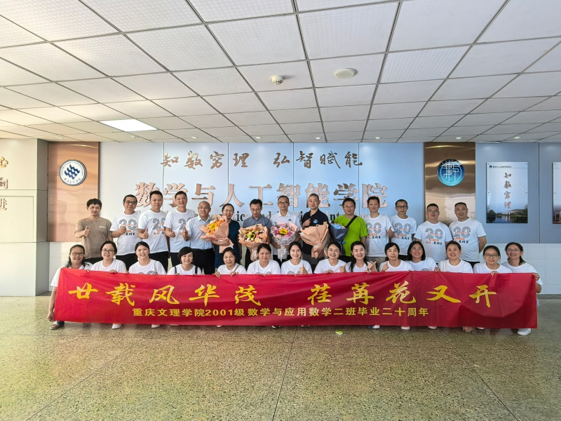 7月12日,数学与人工智能学院数学与应用数学专业2001级2班校友怀着对母校的深深眷恋和对同窗情谊的珍视,从四面八方赶来,相聚于阔别已久的校园,共同开启一场意义非凡的毕业20周年重聚之旅。学院党委书记杨加强,党委副书记、纪委书记李兴春,当年授课教师代表颜敬先、王明华、徐承章、谭昌眉、黎前修、杨纯富、周清、田斌、余大鹏、黄华等参加活动。